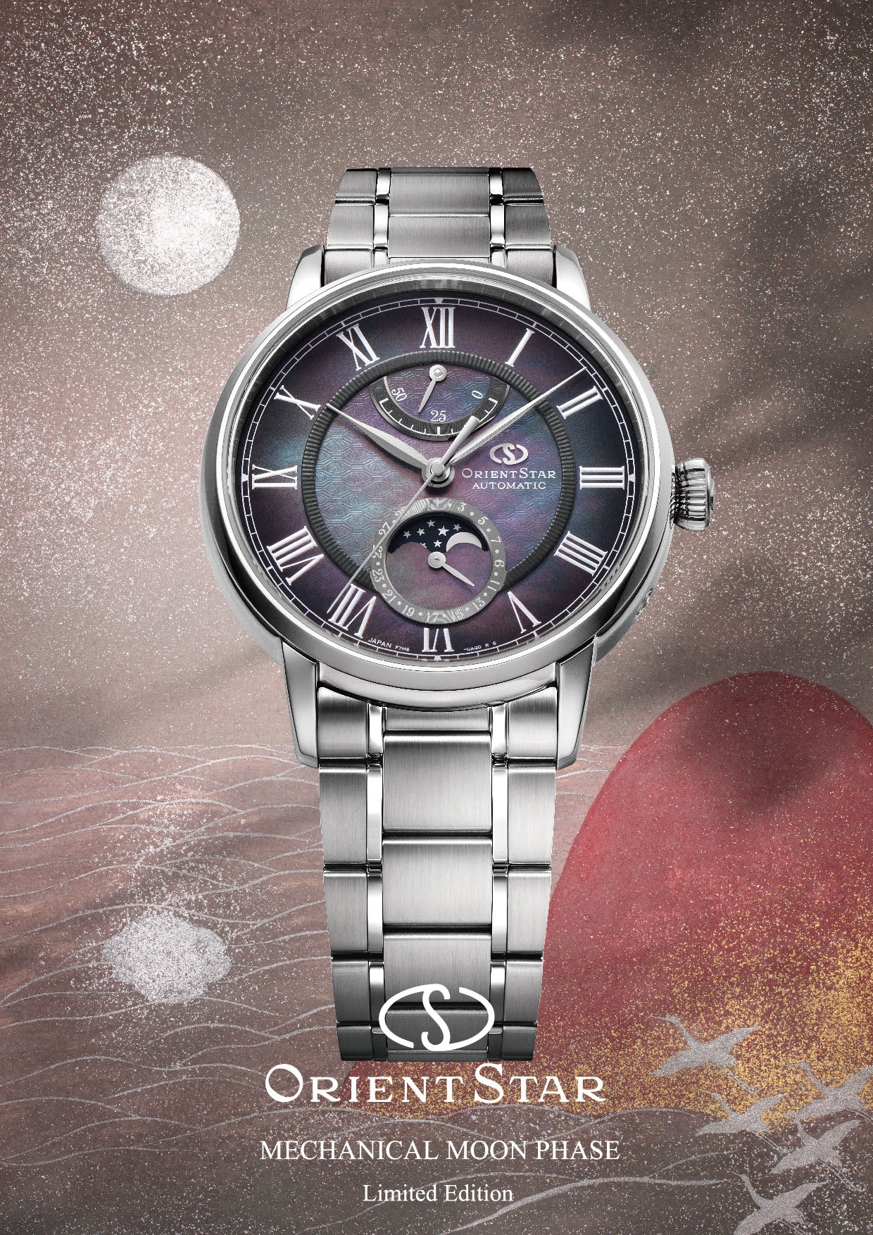 在過去,Orient Star月相錶以其巧妙的設計廣受腕錶界專家們的讚譽,包括在12點鐘位置搭載系列經典的動力儲存顯示器、9點鐘位置的半鏤空機芯視窗,顯示內部機械機芯之運作,以及6點位置設有日期指針的月相盤。多項特色不僅令其在腕錶產業中脫穎而出,更受到錶迷們的喜愛。 為歡慶品牌70周年,Orient Star回應錶迷們的需求,於2021年首次在日本獨家推出首款無鏤空的月相機械錶,錶盤選用優雅且柔和的象牙色,同時延續了羅馬數字、鐵路軌道刻度,以及易辨識的柳葉形指針等經典設計元素。