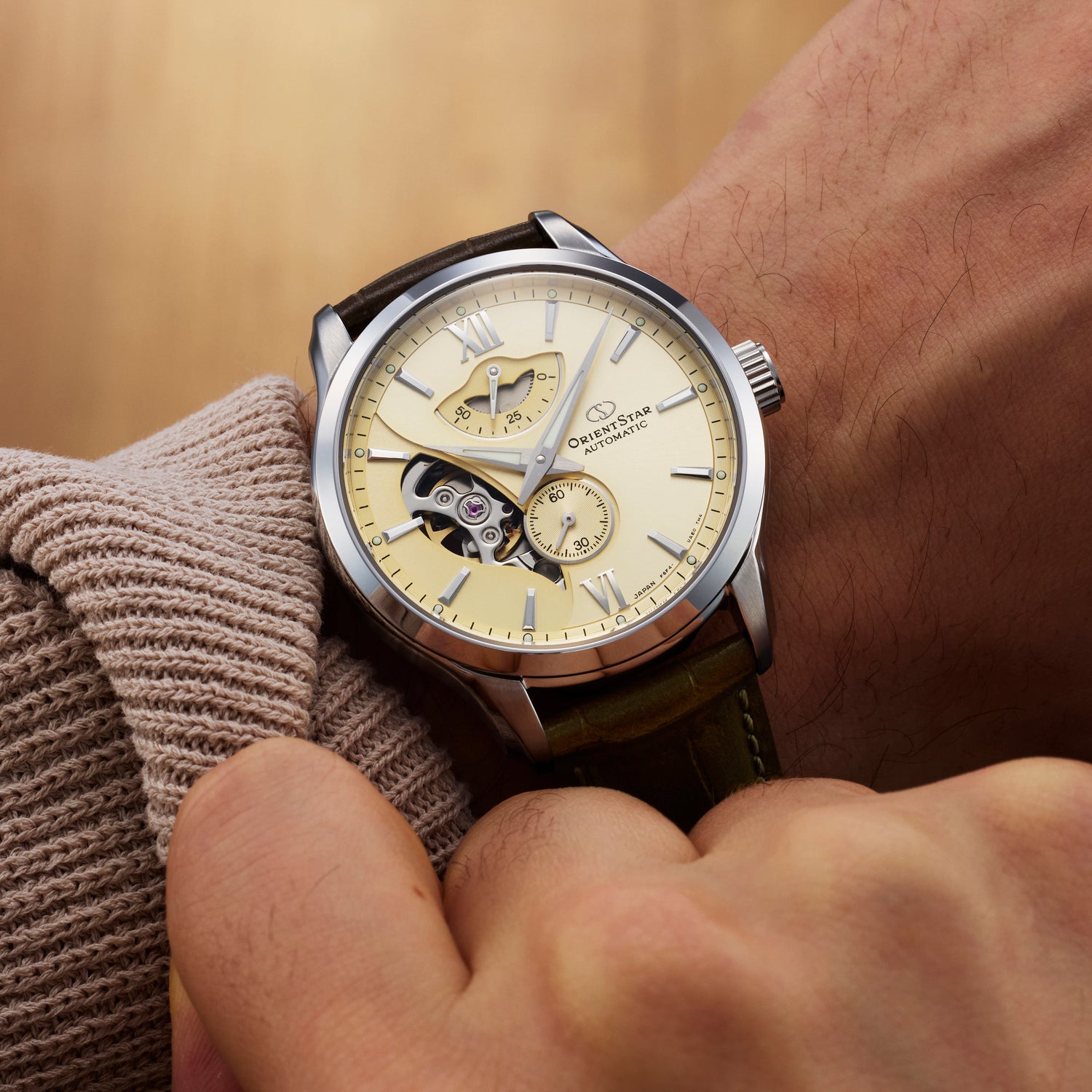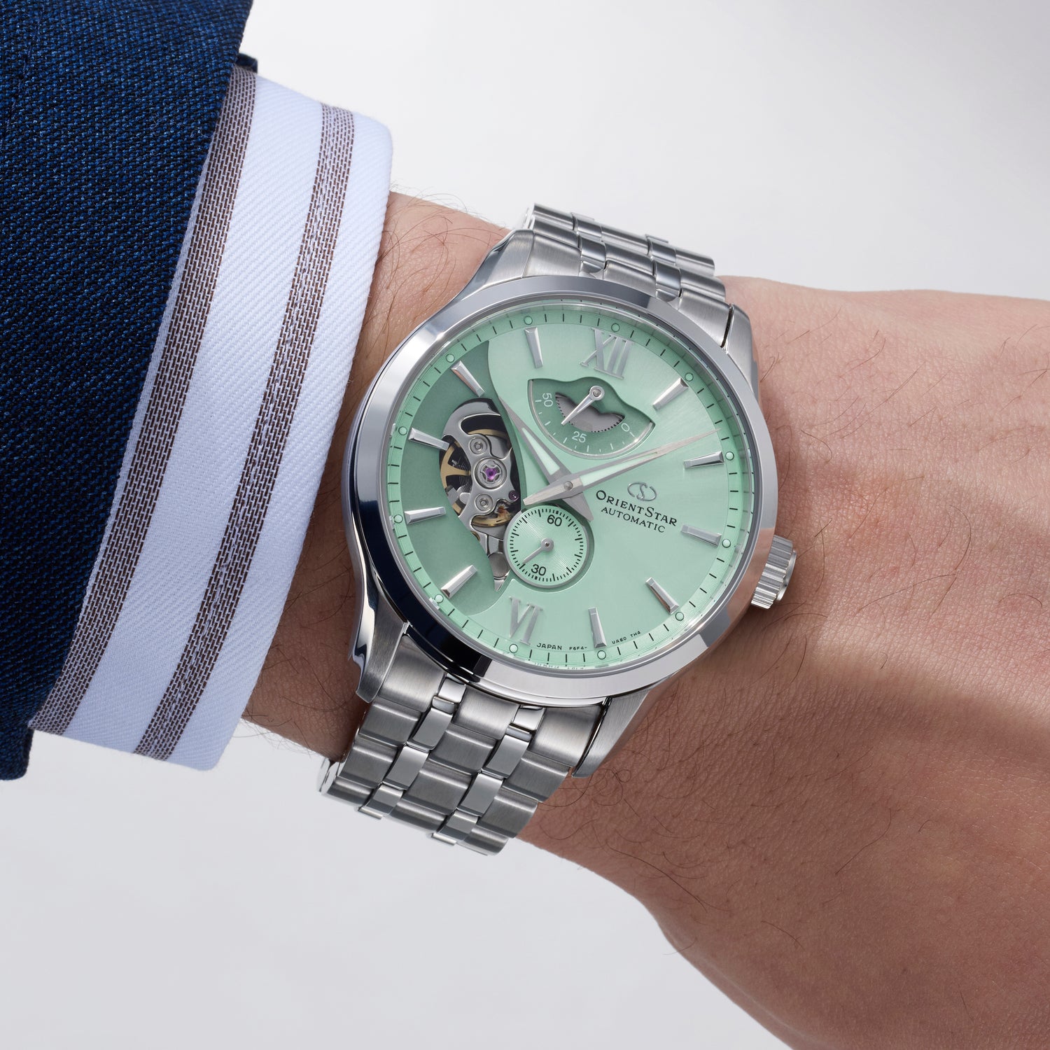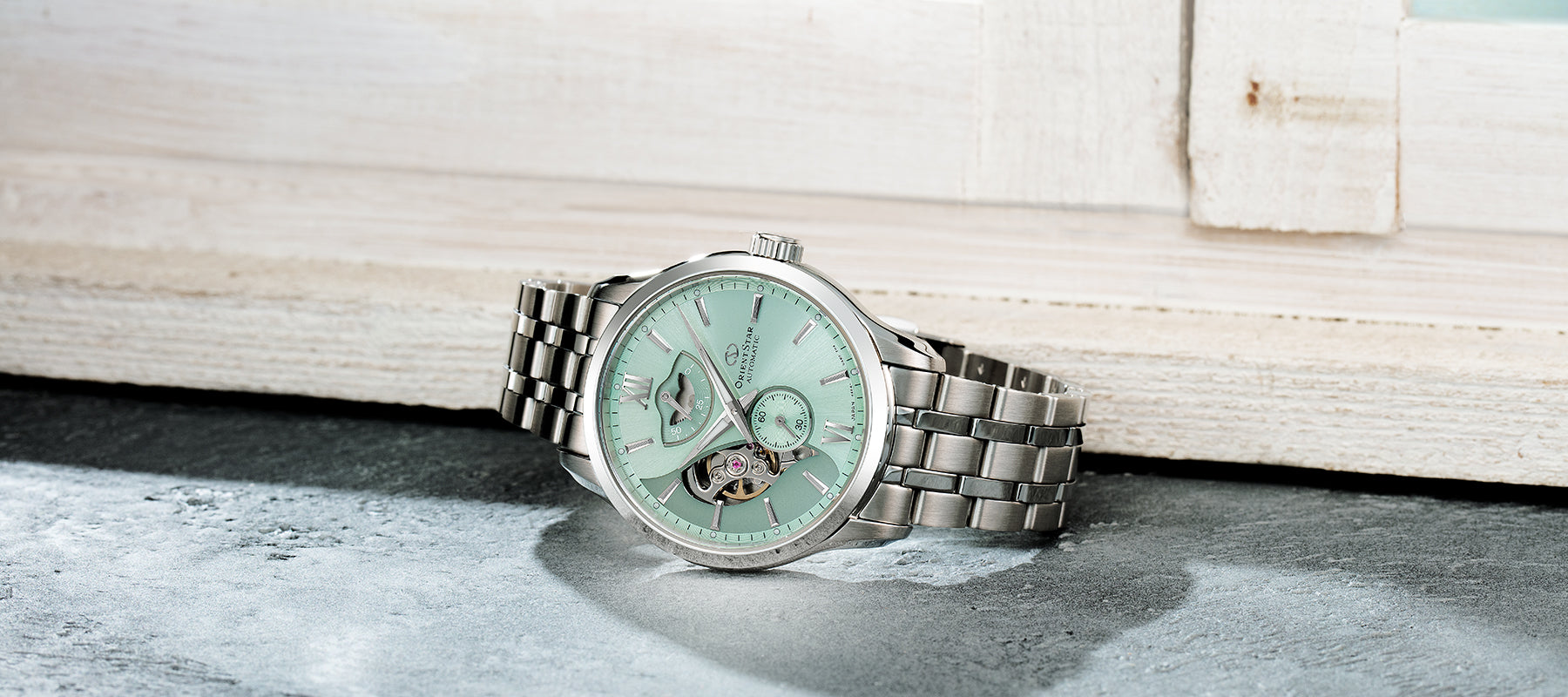 Orient Star Layered Skeleton系列增添了兩款新色,一款錶盤設計上運用海邊的香檳金色RE-AV0B10G;另一款則是限量發行700只的薄荷綠限量款RE-AV0B11E。精緻的設計及配色,是夏季穿搭的理想腕錶。